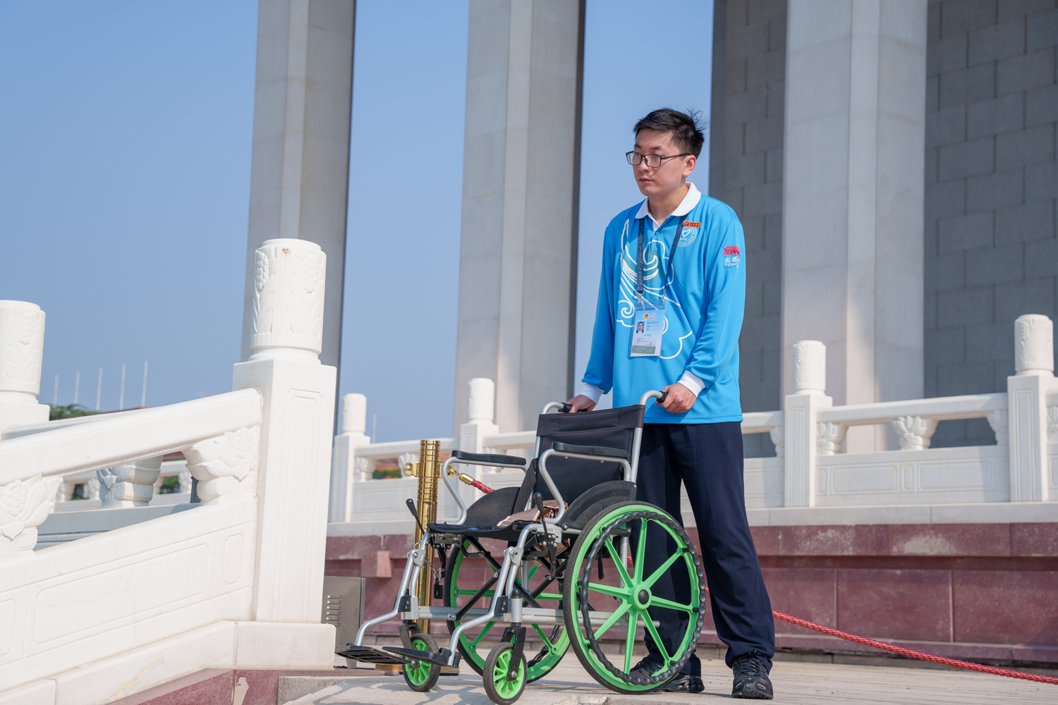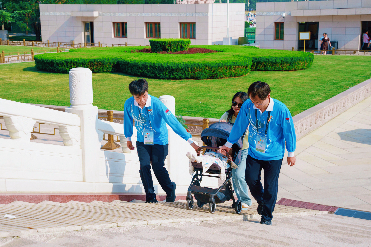 他們協助輪椅、童車及行動不便人士上下臺階,用心守護入口秩序,一次次奔走攙扶的身影,是“為人民服務”初心的生動實踐。來自數字書院的項可瑞表示:“看著瞻仰隊伍井然有序地緩緩行進,感受著空氣中彌漫的肅穆與崇敬,我心中充滿了力量。這份經歷,讓我深刻體會到平凡崗位也能為守護崇高的集體記憶貢獻微光,激勵我在未來的道路上,繼續傳承這份赤誠與奉獻。”