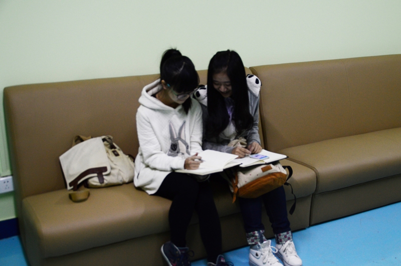 “樂•空間”以天空藍(lán)、草原綠以及鵝絨黃為主色調(diào),清爽的色調(diào)消除了地下室給人的壓抑感覺。來過地下空間的同學(xué)紛紛表示,明亮而柔和的燈光、柔軟溫潤的色彩給人一種舒適感,聽著琴房里傳來的悠揚(yáng)琴聲,感覺接受到了藝術(shù)的熏陶。同時(shí),同學(xué)們也表示,在“樂•空間”能夠遇到很多志同道合的朋友,一起練琴、一起練舞,促進(jìn)了對(duì)于藝術(shù)文化的追求,課余生活更加豐富多彩。