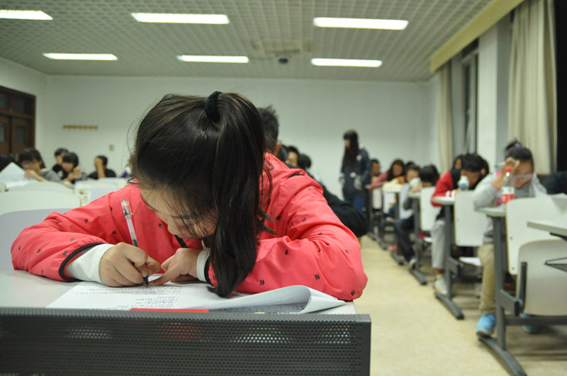 13級433名新生參加了考試(1名同學因傷缺考),這是他們進入大學以來參加的第一次正規考試,在整個考試過程中,同學們都認真自覺地完成考試,考場秩序井然。