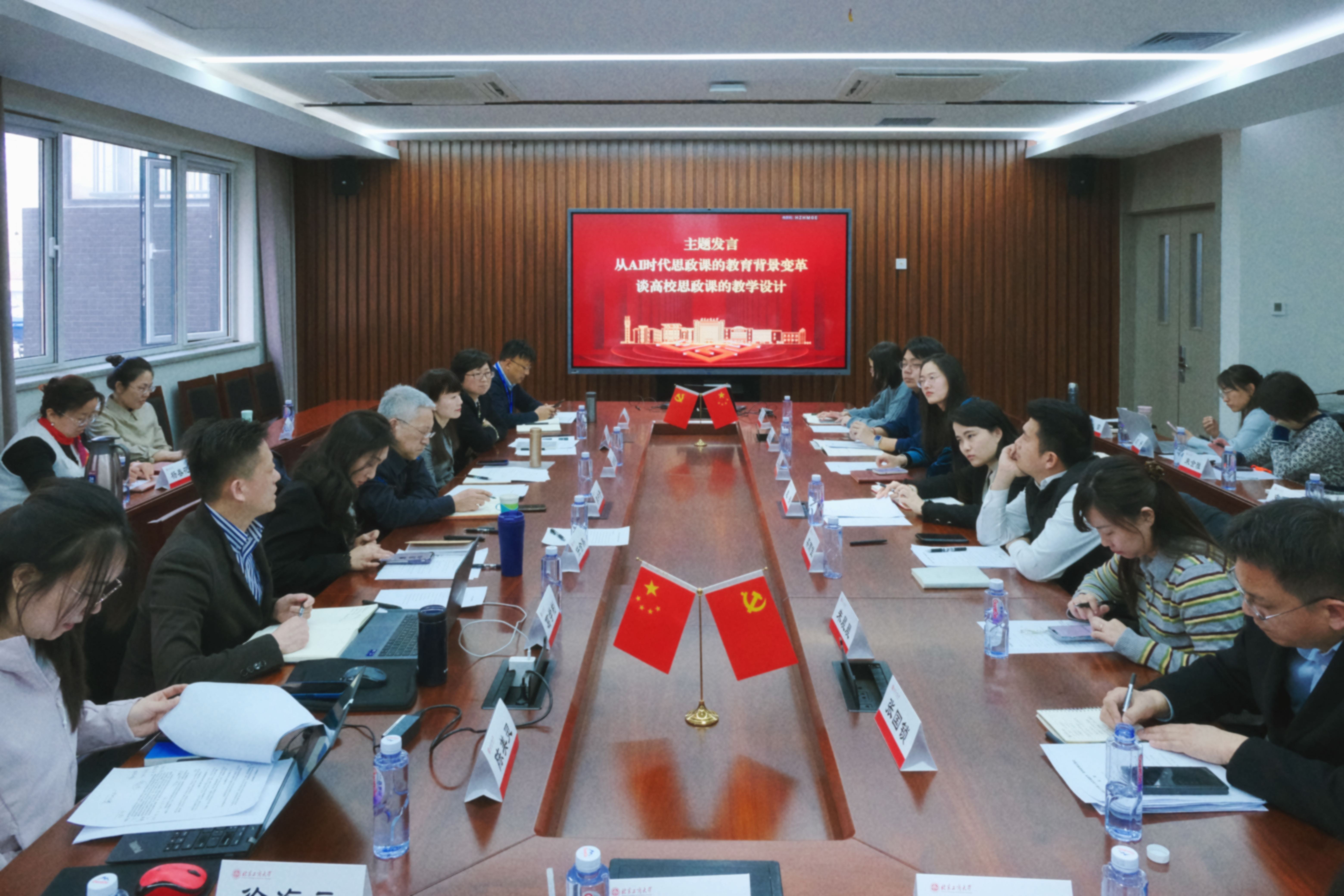 馬克思主義學(xué)院黨總支書記任金晶、院長趙春麗、習(xí)近平新時代中國特色社會主義思想概論教研室主任葛學(xué)彬、毛澤東思想和中國特色社會主義理論體系概論教研室主任陳美靈圍繞“從AI時代思政課的教育背景變革談高校思政課的教學(xué)設(shè)計”展開發(fā)言。大家一致認(rèn)為要繼續(xù)深化學(xué)院思政課“1234N”綜合改革,探索“AI+思政課”智能教學(xué)模式,充分發(fā)揮AI技術(shù)在學(xué)情分析、教學(xué)場景構(gòu)建、教學(xué)內(nèi)容創(chuàng)新、教學(xué)過程和教學(xué)評價方面的優(yōu)勢,重構(gòu)教學(xué)內(nèi)容、創(chuàng)新教學(xué)模式、建設(shè)資源體系。
