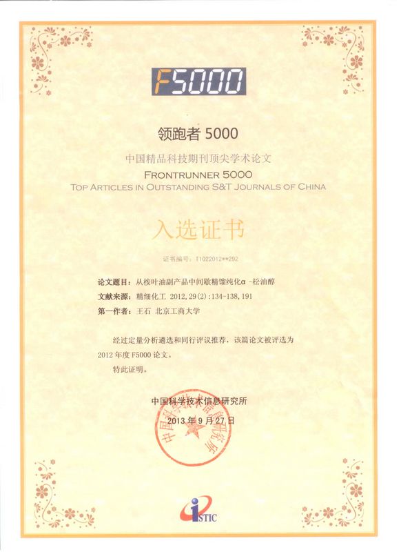 “領跑者5000——中國精品科技期刊頂尖論文”(簡稱“F5000”)是由科技部中國科學技術信息研究所按照一定的定量定性分析方法,從全國近300本中國精品科技期刊中遴選出優秀論文,此次入選率為1.9%。“F5000”旨引領我國高水平科技期刊事業的發展和成長,更好地宣傳我國的優秀學術成果。“F5000”將與國際SCI數據庫和國內重要檢索系統鏈接,在更大范圍內向世界科技同行展示和推廣我國最重要的科研成果,形成一定社會顯示度和國際國內影響力。