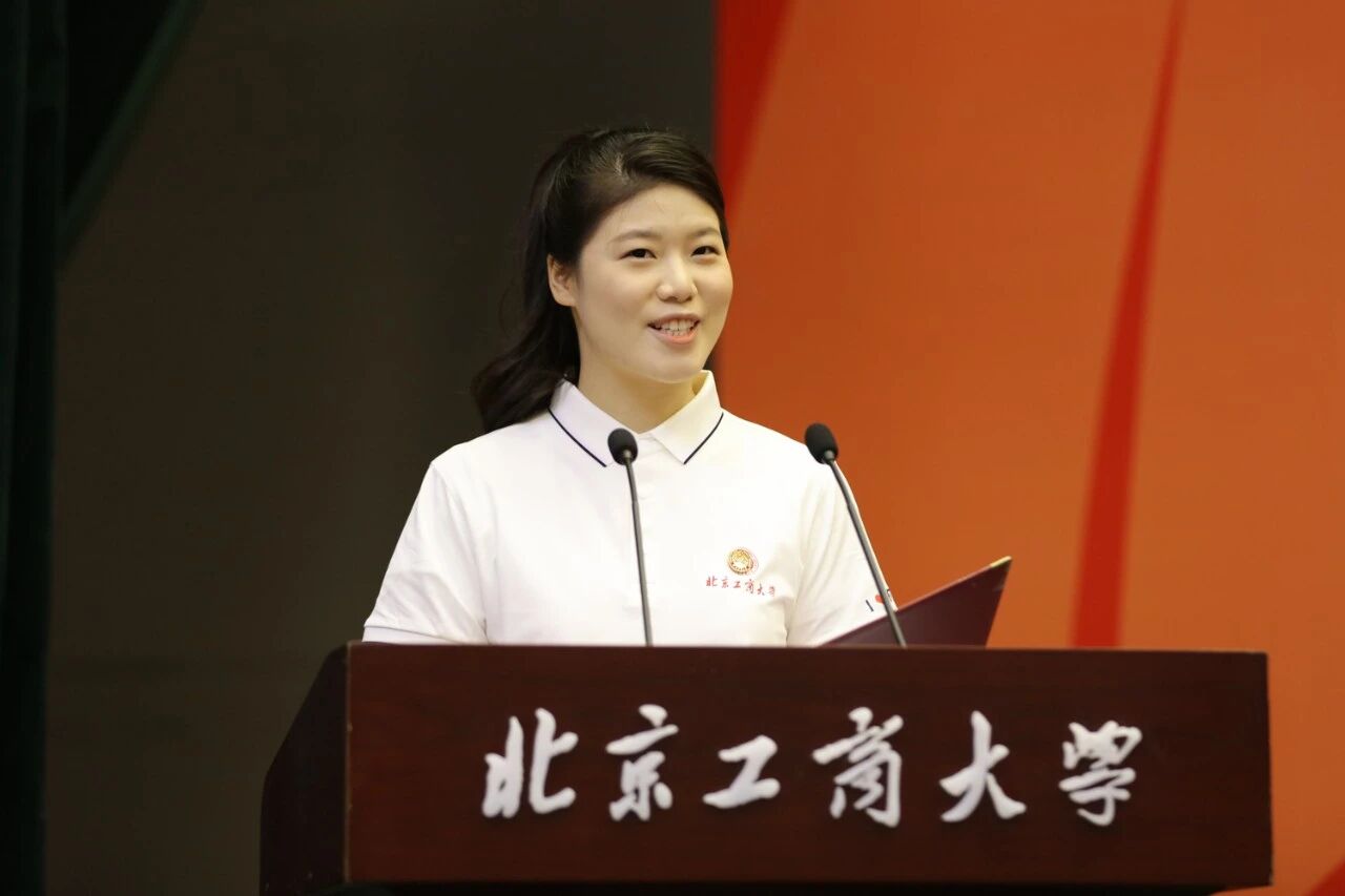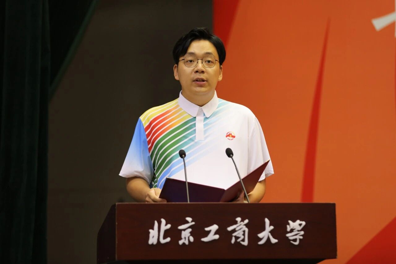 中國人民抗日戰爭暨世界反法西斯戰爭勝利80周年紀念大會志愿者、馬克思主義學院廖承禹作為在校生代表發言,他分享了自己作為志愿者參與九三閱兵的經歷,表示這是一次觸摸時代脈搏、感受國家發展的生動課堂,體會到北工商人的擔當與使命。同時他也提及了研究生生活的幾點心得,希望新生們主動學習,尋找心之所向;大膽嘗試,在實踐中成長;心懷感恩,傳遞溫暖與能量。最后,他勉勵全體新生把個人的成長融入時代發展的浪潮,用“工商一體化”理念破解學科前沿難題,為學校高水平研究型大學建設貢獻青春力量。