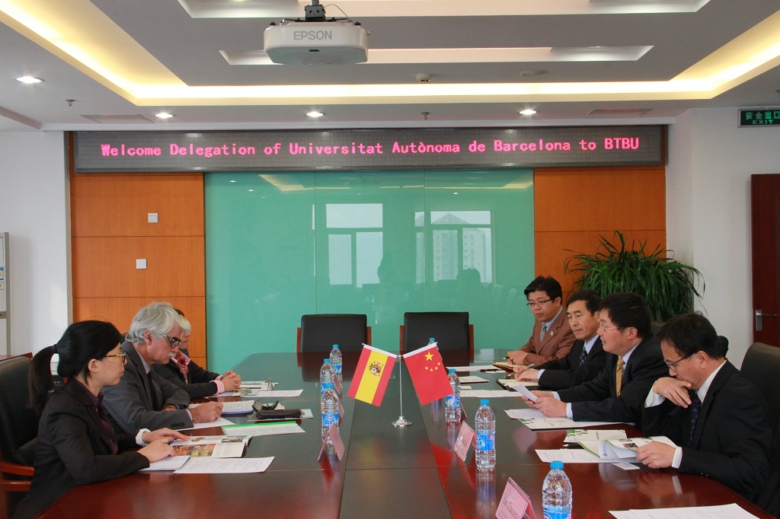 10月31日,西班牙巴塞羅那自治大學(xué)副校長(zhǎng)路易斯•昆塔納(Lluis Quintana)一行三人訪問(wèn)我校,此次來(lái)訪是繼今年6月孫寶國(guó)副校長(zhǎng)率團(tuán)訪問(wèn)巴塞羅那自治大學(xué)的回訪。李朝鮮副校長(zhǎng)在阜成路校區(qū)親切會(huì)見(jiàn)了路易斯副校長(zhǎng)一行。