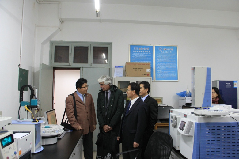 會(huì)談結(jié)束后,代表團(tuán)一行在國(guó)際交流與合作處何明珂處長(zhǎng)和食品學(xué)院院長(zhǎng)徐寶財(cái)、副院長(zhǎng)鄭福平的陪同下參觀了食品學(xué)院實(shí)驗(yàn)室和我校的國(guó)際學(xué)生公寓。