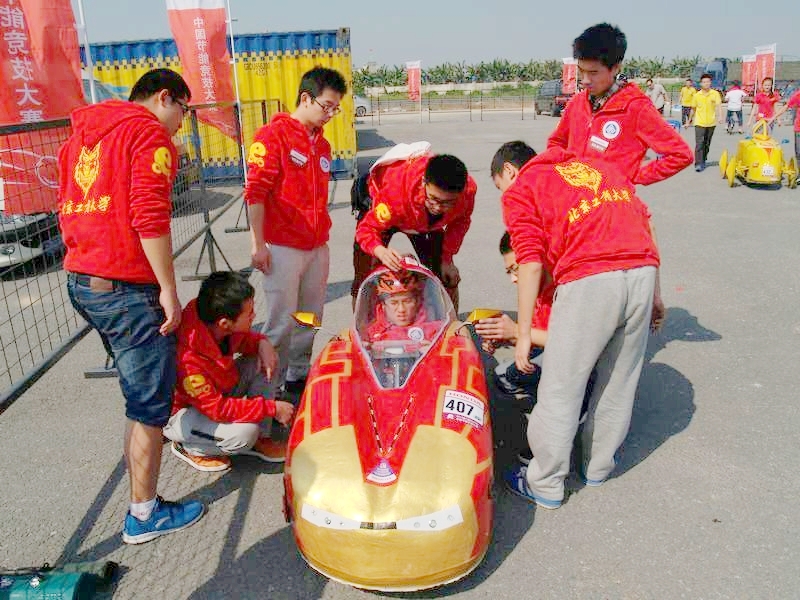 在學(xué)院、教務(wù)處、科技處、團(tuán)委及研究生部等有關(guān)部門(mén)大力支持下,隊(duì)員們憑借大膽創(chuàng)意、精確的結(jié)構(gòu)設(shè)計(jì)及以人為本的設(shè)計(jì)理念,制作出的節(jié)能電動(dòng)車(chē)安全、舒適、方便。特別是獨(dú)樹(shù)一幟的方向盤(pán)、自制輕便舒適的沙發(fā)座椅以及高端大氣的電控系統(tǒng)成為賽場(chǎng)上的一大亮點(diǎn),吸引了眾多參賽隊(duì)員目光,受到包括北京青年報(bào)及廣東交通廣播電臺(tái)等多家媒體的采訪。