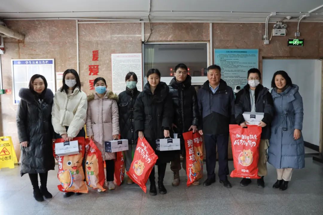 玉兔呈歡辭舊歲,神龍躍起迎新年。2月9日農歷除夕,學校黨委書記黃先開和黨委常委、副校長左敏分別帶隊,走訪慰問了良鄉主校區和阜成路校區堅守崗位一線教職工和留校學生代表,深入了解留校學生的學習生活情況及需求,向堅守一線的員工表示衷心感謝,并為大家送上新春祝福和春節暖心大禮包。