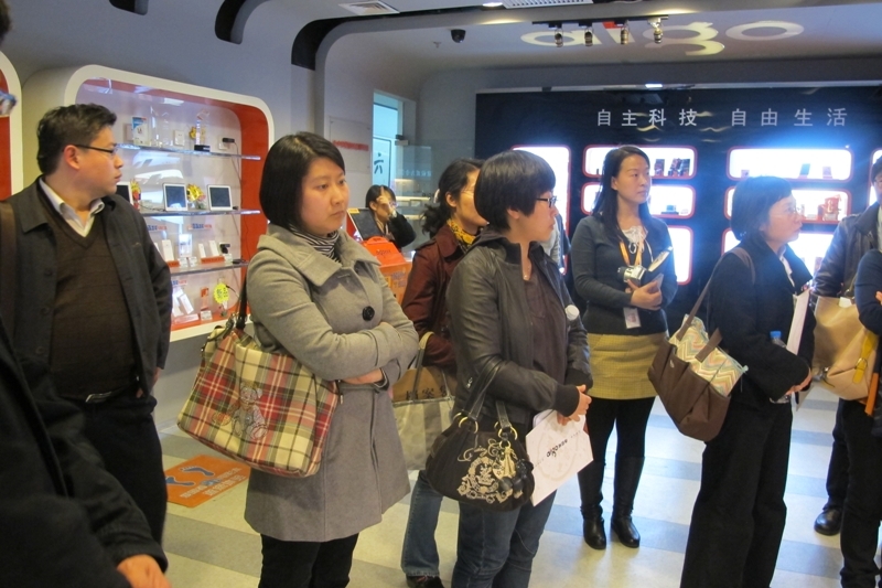座談會后,老師們參觀了公司的電子產(chǎn)品展示廳。這里陳列了公司成立20年來榮獲的各種獎勵和主要科技創(chuàng)新產(chǎn)品,其中中國文化與數(shù)字水印技術(shù)相結(jié)合的“哥窯”數(shù)碼相機,全球領先的便攜式云投影儀,集無線路由、移動存儲、移動電源各功能于一體的移動伴侶,手寫式錄音筆等富有民族特色的高科技產(chǎn)品,引發(fā)了老師們的極大興趣。參觀中企業(yè)先進的科技創(chuàng)新能力、清晰的市場定位、獨具特色的經(jīng)營理念,給老師們留下了深刻的印象。