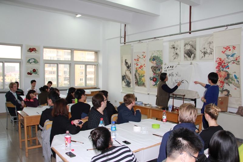 11月12日,國(guó)際處舉辦首次中國(guó)文化體驗(yàn)大課堂之水墨畫課程。中國(guó)著名畫家郭學(xué)秀老師受邀為留學(xué)生講授水墨畫繪畫手法和繪畫技巧,40余名外國(guó)留學(xué)生報(bào)名參加。通過郭老師的教授,留學(xué)生們對(duì)中國(guó)繪畫產(chǎn)生了極大興趣,認(rèn)真按照老師的講解練習(xí)筆法并不時(shí)地向老師以及在場(chǎng)的志愿者請(qǐng)教詢問。留學(xué)生親身體驗(yàn)了我國(guó)傳統(tǒng)繪畫的博大精深,更加深了他們對(duì)我國(guó)文化的認(rèn)識(shí)與理解。今后將繼續(xù)舉辦中國(guó)傳統(tǒng)文化體驗(yàn)大課堂的系列課程。