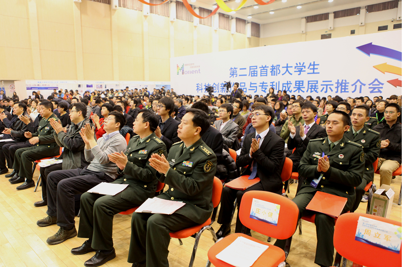 11月23日、24日,第二屆首都大學生科技創新作品與專利成果展示推介會在我校良鄉校區文體館隆重舉行。本屆推介會主題為“青春構筑夢想,創新成就未來”。北京市科學技術協會黨組書記、常務副主席夏強,北京市知識產權局副局長付曉輝,我校黨委書記孫堯東、副校長孫寶國應邀出席開幕式。開幕式由北京市科學技術協會副主席周立軍主持。