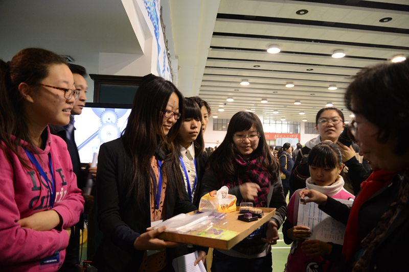材料與機(jī)械工程學(xué)院的“摳門狼”團(tuán)隊(duì)?wèi){借大膽創(chuàng)意、精確的結(jié)構(gòu)設(shè)計(jì)及以人為本的設(shè)計(jì)理念,制作出的節(jié)能電動(dòng)車憑借其安全、舒適、方便、節(jié)能的特性備受關(guān)注。食品學(xué)院的百合紫薯山藥糕從營(yíng)養(yǎng)口味上進(jìn)行創(chuàng)新,滿足消費(fèi)者日益豐富的需求,突出了學(xué)校食品學(xué)科特色。藝術(shù)與傳媒學(xué)院學(xué)生團(tuán)隊(duì)通過展板展示的創(chuàng)意作品設(shè)計(jì)模型圖,向大家宣傳了廢物利用的環(huán)保理念:創(chuàng)意設(shè)計(jì)“saving”是一個(gè)回型衣架,它不僅可以節(jié)省掛衣服的空間,還可以快速將衣服放進(jìn)衣櫥,節(jié)省時(shí)間;“finding”則是一個(gè)在夜間可以迅速找到拖鞋的設(shè)計(jì),為人們提供了便利;《復(fù)活》是同學(xué)們將廢舊的啤酒瓶蓋與軟磁鐵相結(jié)合而成的冰箱貼。