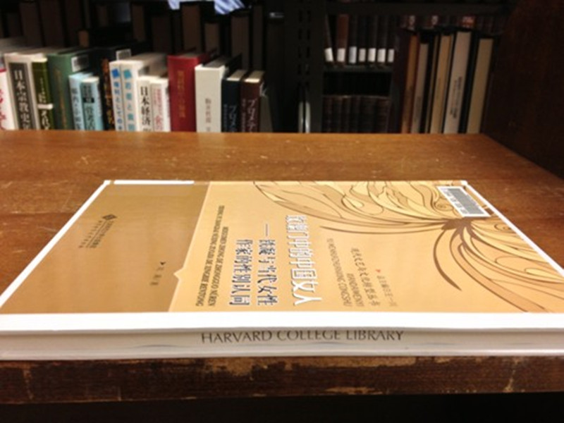 美國哈佛大學1636年成立,1780年由“哈佛學院”更名為“哈佛大學”。它擁有世界上最古老、規模最大的圖書館,圖書選藏入館具有很高的標準。對于作者來說,作品能被之收藏,是一種極大的肯定。哈佛大學圖書館已將《玫瑰門中的中國女人》以中英文的形式顯示在其官方網頁上,并制作英文推薦專頁發布全球。此外,為了更方便閱讀與保存,哈佛大學圖書館特為此平裝書做了一個精裝封殼,切口處蓋有哈佛大學圖書館的藏書章。哈佛大學圖書館的工作人員除提供了該專著收藏在本館的書目信息外,還通過哈佛檢索系統,查詢到共有26家機構收藏了該著作,其中包括耶魯大學圖書館、哥倫比亞大學圖書館、斯坦福大學圖書館、美國國會圖書館、香港大學圖書館等。