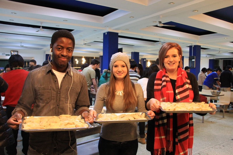 12月10日,國際處組織留學(xué)生與國際交流與合作協(xié)會的志愿者在東區(qū)食堂開展了“中國傳統(tǒng)文化之冬至包餃子活動”。中外學(xué)生早早地來到食堂,一看到擺放整齊的搟面杖、面團、餃子餡就迫不及待地行動起來。對于從未包過餃子的外國留學(xué)生來說,包餃子是一項比較困難的技術(shù)活。在志愿者的耐心幫助下,每一個留學(xué)生都學(xué)會了搟皮,包出了自己滿意的餃子。經(jīng)過將近1個半小時的努力,大家一同品嘗了親手包的熱氣騰騰的餃子。留學(xué)生們紛紛表示,這是他們吃過最好吃的餃子。