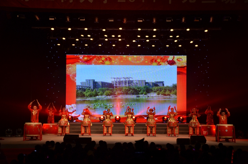 回首2013,有太多的歡笑、汗水、感動與收獲,激動人心的開場視頻帶領大家回顧了2013年學校的重要工作和師生共同走過的難忘時光,嘹亮的小號演奏開啟了整臺晚會演出的序幕。學校十大新聞的視頻揭曉了2013年學校亮點和特色工作,展示了師生凝聚、共同奮進的成績。