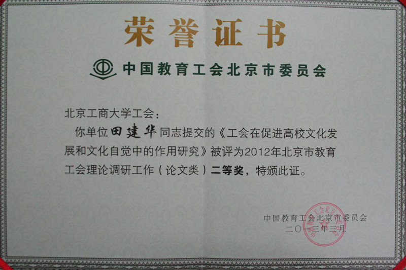 我校的理論調研工作取得了兩項成果,一是法學院/馬克思主義學院田建華負責的《工會在促進高校文化發展和文化自覺中的作用研究》被評為2012年北京市教育工會理論調研工作(論文類)二等獎;二是由工會牽頭的調研報告《困境與超越——高校女教師工作生活壓力調研》被評為2013年北京市教育工會理論調研工作(調研類)二等獎。在2013年北京高校第八屆青年教師教學基本功比賽中,王妍慧老師榮獲文史類B組二等獎,李晗老師榮獲論文評審三等獎、陳秀新老師榮獲論文評審優秀獎,學校獲得優秀組織單位獎。