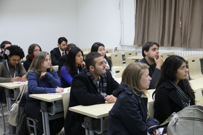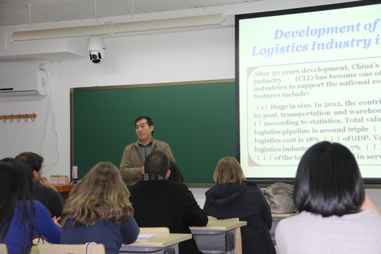 國際交流與合作處處長何明珂、副處長劉影與塞瑟•法拉吉顧問就兩校的學生交換和教師交流項目的具體細節進行商談。何明珂處長和經濟學院宛璐老師為代表團的10名巴西學生介紹了我國物流發展的現狀和前景、中國對外貿易和金融改革等方面的情況,并進行交流。