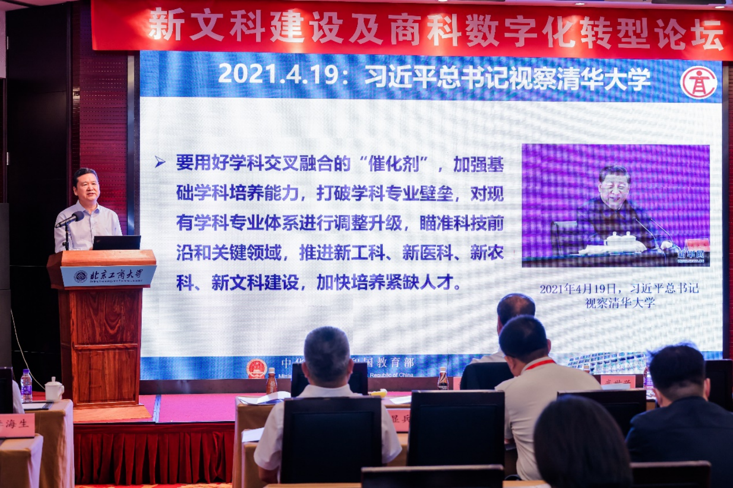 8月28日,新文科建設及商科數字化轉型論壇于線上線下同步舉行。本次論壇是在教育部、市教委相關領導的關心支持下,在中國人工智能學會、中國教育技術協會的具體指導下,由北京工商大學主辦,北京工商大學數字未來中心、相關學院和中國人工智能學會智能服務專委會承辦。論壇旨在順應數字經濟發展趨勢,加快商科數字化轉型,認真落實教育部、北京市對我校辦學的各項要求,以新文科建設和高等教育數字化轉型為主題開展學術研討。論壇開幕式由我校黨委書記黃先開主持。