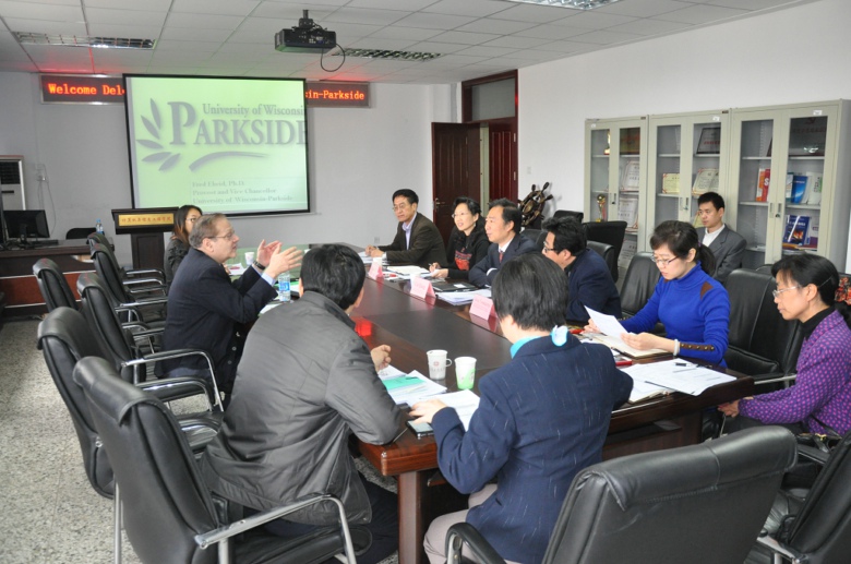 美國威斯康辛大學帕克賽德分校分別與經濟學院、計算機與信息工程學院及商學院進行了洽談。威斯康辛大學帕克賽德分校副校長弗萊德•伊貝德向各學院簡單地介紹了本校情況,并就雙方學生“3+1”項目、教師的互訪交流和學生暑期項目交換了意見,希望能夠繼續深入并加強已有項目的合作,開拓更多的合作機會。