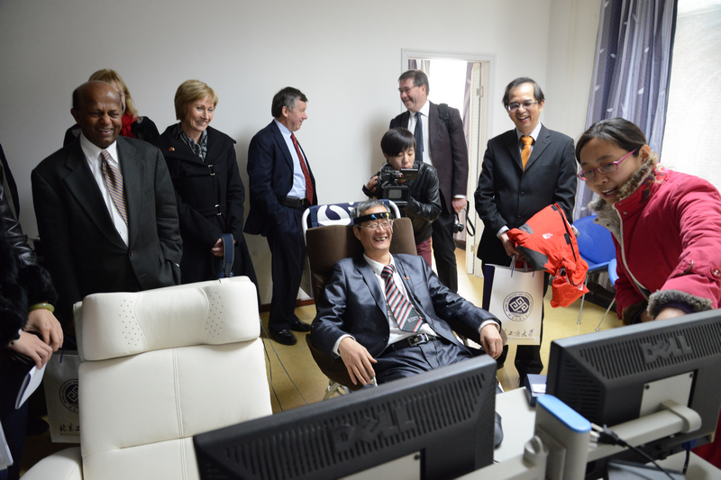 會見前,國際合作伙伴院校代表團在國際交流與合作處負責人和老師的陪同下來到我校良鄉校區參觀了校史館、圖書館和文科實踐中心,并走訪了我校教務處和學生處。在校史館,來訪院校代表了解了我校的辦學歷史,并饒有興趣的觀看了我校自建校以來在各方面所取得的成果;在圖書館和文科實踐中心,代表團對我校先進的教學設施和以學生為本的教學理念和服務工作表示贊賞。代表團一行來到教務處,與教務處負責人和相關科室的同志座談,教務處負責人介紹了我校的教學管理工作和近年來本科教學改革情況,并就本科招生情況和教學質量監控進行了交流。隨后代表團在學生處相關負責人的陪同下,參觀了學生心理素質中心的實驗室和宣泄室,并就雙方在學生管理方面所關心的問題進行了座談和交流。