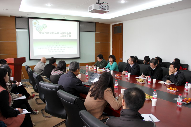 李育材詳細介紹了油用牡丹發展情況。他介紹了中國牡丹資源的狀況,重點介紹了油用牡丹資源的分布及研究情況,從生態效益、經濟效益和社會效益等三方面系統分析了發展油用牡丹產業的重要意義。他指出,種植油用牡丹可防風固沙、水土保持、提高農民收入、開拓加工產業的經濟價值,同時還具有促進我國糧油生產、保障國家糧油安全的重要社會意義。同時,李育材全面回顧了油用牡丹的研究歷程,他指出油用牡丹的發展源自上世紀六七十年代山東菏澤農民的客觀認知和粗放加工,之后經歷了設備創新、科學評定等十二個研究階段,展望了目前發展油用牡丹所面臨的大好形勢。另外,李育材從提高認識、加強宣傳、科技創新、政策和資金扶持等多角度出發,結合其多年調研油用牡丹的實踐和在林業局相關工作的經歷認識,就如何做大做強油用牡丹產業提出了獨特見解。報告會氣氛熱烈,基于師生對牡丹油用的濃厚興趣,李育材副局長還現場回答了師生們提出的若干問題。