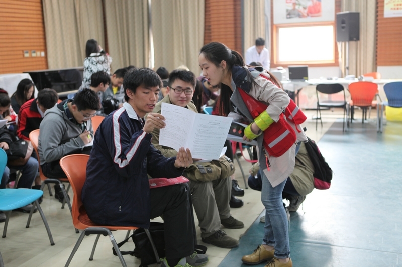 此次無償獻血活動繼續得到了全校學生的積極響應,據統計,短短一上午,共有254位同學參加了獻血。藝術與傳媒學院作為承辦單位,提前一周就開始做各項籌備和宣傳工作。學校紅十字會的同學們總結以往經驗,組織獻血同學發號排隊,每20人一組有序進入獻血大廳,保持采血現場空氣流通。學生處石淑艷老師、校醫院劉大夫等是獻血現場的“老人”,盯在現場,隨時解決學生遇到的各種問題。學生志愿者們則為獻血活動提供了全程服務,早早趕到采血現場,為同學們咨詢獻血知識、獻血流程,告訴同學們填表要求等,用微笑溫暖著獻血的同學。獻血期間,學生處處長呂素香來到現場看望獻血同學及在場的工作人員。