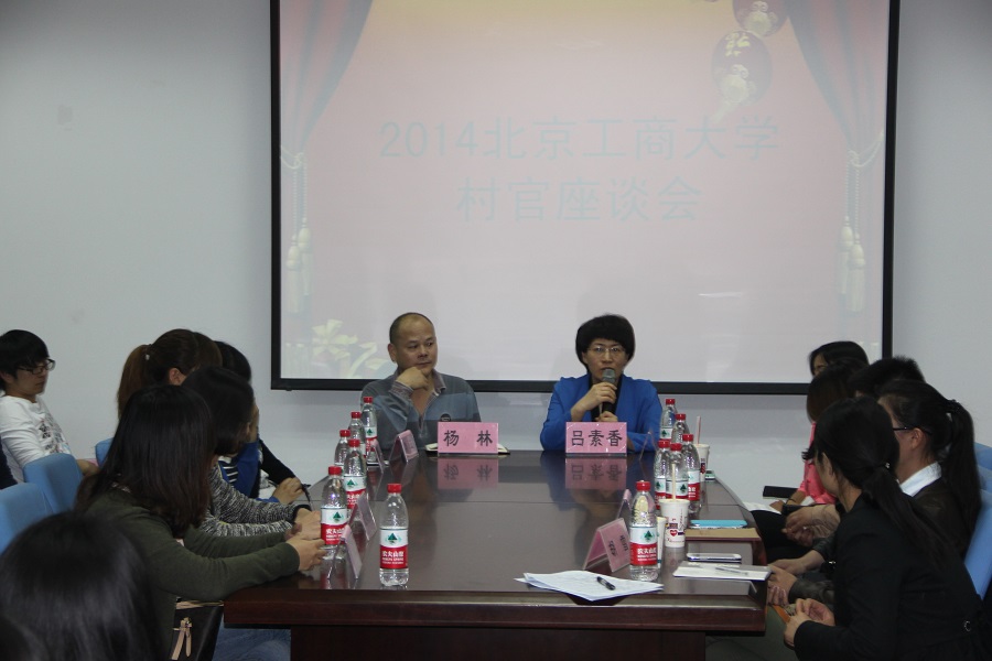 座談會由就業指導中心主任楊林主持,他介紹了2014年的總體就業形勢以及2014年大學生村官選聘的政策要求,鼓勵同學們積極服務北京基層、投身新農村建設。學生處處長呂素香對返校參會的村官同學們表示熱烈歡迎,希望村官校友不僅介紹自己在村官之路上的收獲與成長,也要剖析工作生活中的困惑與煩惱,讓畢業生對未來的職業生涯有全面的認知,在對自身和社會形勢綜合分析的基礎上,遵從內心的聲音,理性選擇發展道路。