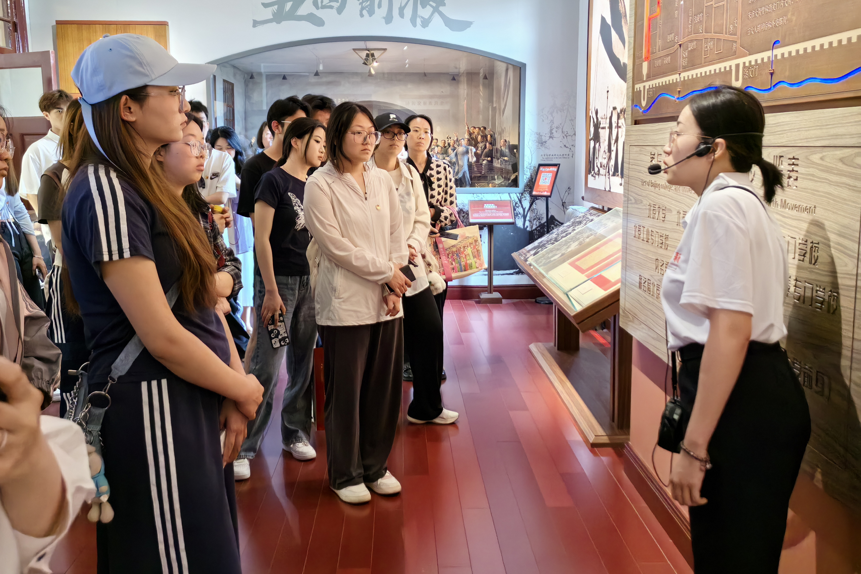 歷史場景復原與專題陳列展示結合,構成鴻篇巨制式的歷史畫卷,一張張照片印照著百年前的青春模樣,一篇篇稿件記載著新思想、新文化的起源發展。青馬工程團校學員參觀了“光輝偉業 紅色序章——北大紅樓與中國共產黨早期北京革命活動主題展”,探尋馬克思主義在中國早期傳播之路。