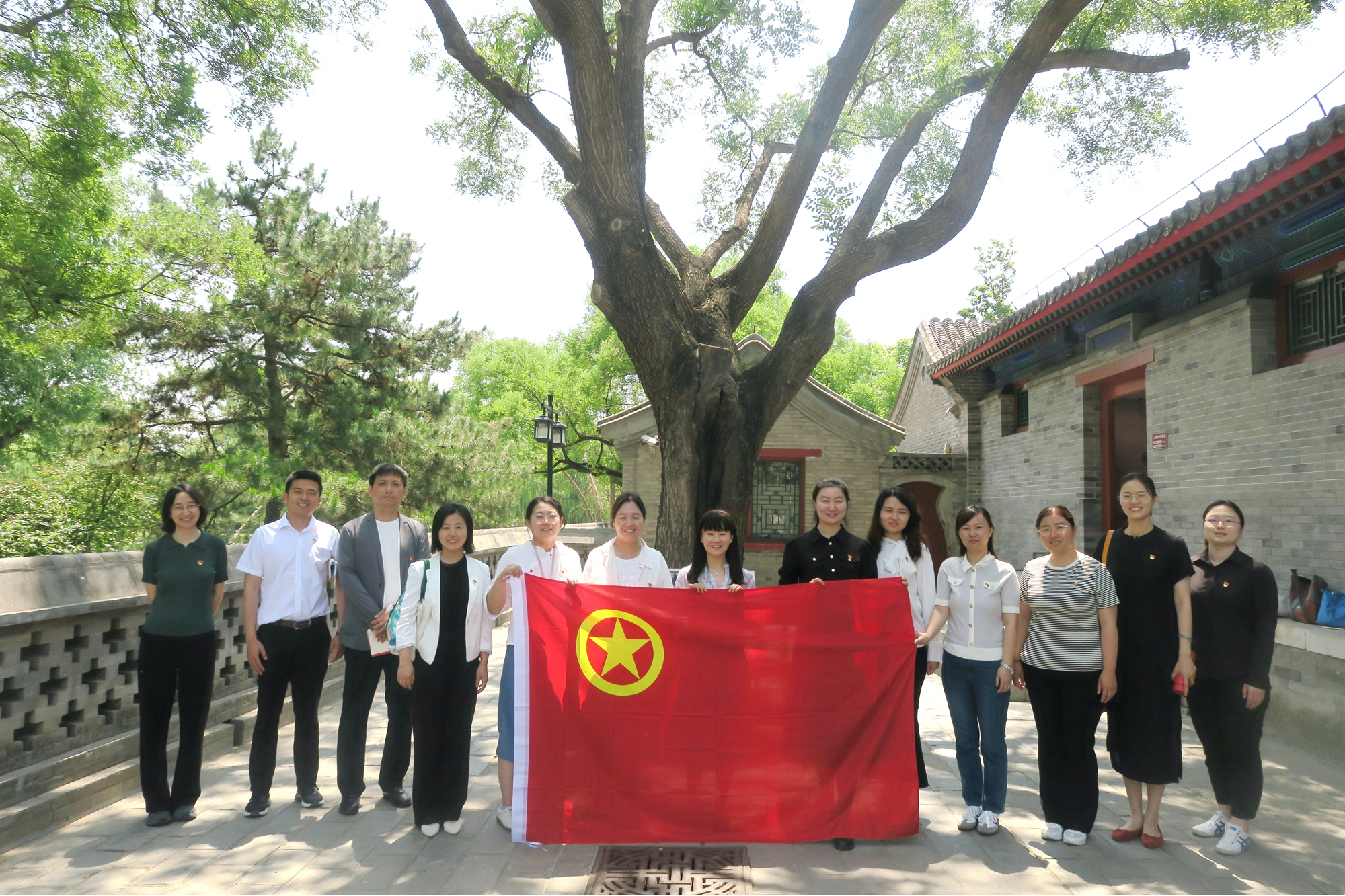 1920年毛澤東第二次來京期間,與輔仁學社同仁在慈悲庵就驅張運動進行會商,并在門口大槐樹下合影留念。