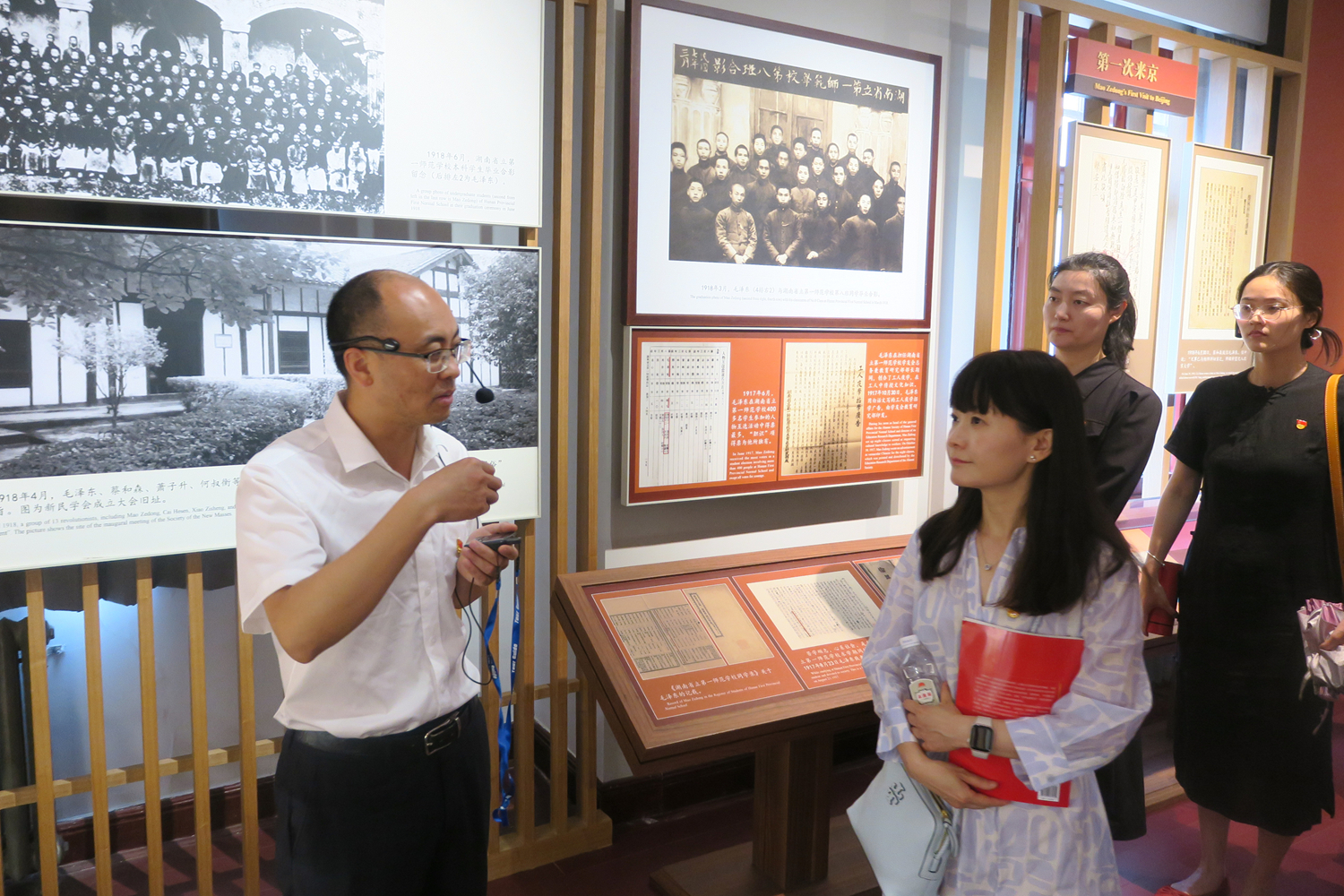 五四運動前后,青年毛澤東兩次來到北京,尋求革命真理,開展革命活動。第一次來京期間,毛澤東被安排在北大紅樓圖書館做書記員。“青年毛澤東由激進民主主義者逐漸轉變為堅定的馬克思主義者,這里印記著他胸懷天下的政治抱負,留下了他尋求真理的光輝足跡,見證了他成長為堅定馬克思主義者的思想軌跡。”中國共產黨早期北京革命活動紀念館館長楊家毅作為研學導師,為師生們親自講解。