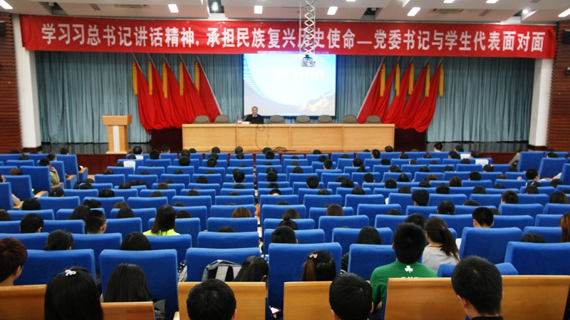 在“五四運動”95周年紀念日到來前夕,4月28日,學生處、團委在良鄉(xiāng)校區(qū)舉辦“黨委書記與學生代表面對面”活動,黨委書記孫堯東為420多名學生預備黨員做了題為“學習講話精神,加強黨性修養(yǎng)”的專題講座。組織部副部長、機關黨委常務副書記鄭喜姣,團委書記呂良及各學院黨總支副書記、輔導員們參加活動。講座由學生處處長呂素香主持。
