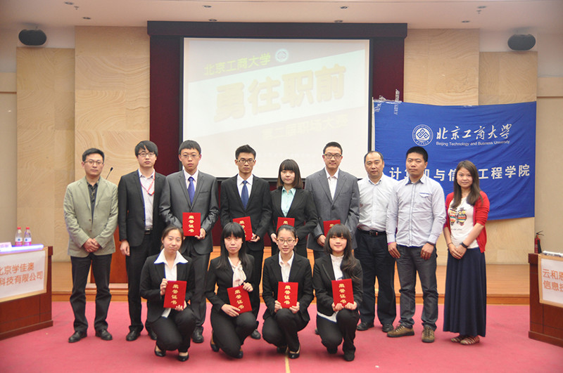 本次大賽模仿《職來(lái)職往》節(jié)目形式,特別邀請(qǐng)了金道天成信息系統(tǒng)服務(wù)公司副總裁吳天宇、上海煙草集團(tuán)北京卷煙廠人力資源部副主任梅鎖華、北京學(xué)佳澳教育科技有限公司就業(yè)部經(jīng)理任明旗、云和恩墨信息技術(shù)有限公高級(jí)工程師史躍東擔(dān)任現(xiàn)場(chǎng)評(píng)審嘉賓。比賽分為自我介紹、壓力面試、情境體驗(yàn)、最終判定四個(gè)環(huán)節(jié)。經(jīng)過(guò)前期初賽層層選拔,經(jīng)貿(mào)132張乃馨等來(lái)自全校各學(xué)院的八名選手晉級(jí)決賽。選手們逐個(gè)登場(chǎng),在各具特色的自我介紹并展示個(gè)人才能后企業(yè)嘉賓逐一提問(wèn),針對(duì)選手性格特點(diǎn)、職業(yè)規(guī)劃進(jìn)行全面剖析和準(zhǔn)確點(diǎn)評(píng)。選手們的回答、嘉賓的點(diǎn)評(píng)不時(shí)贏得在場(chǎng)觀眾的熱烈掌聲和笑聲,評(píng)委們特別提醒學(xué)生應(yīng)懂得如何結(jié)合自身優(yōu)勢(shì)選擇正確的職業(yè)目標(biāo),如何不斷的提升自我、更加清楚認(rèn)識(shí)自身的不足與優(yōu)勢(shì)。