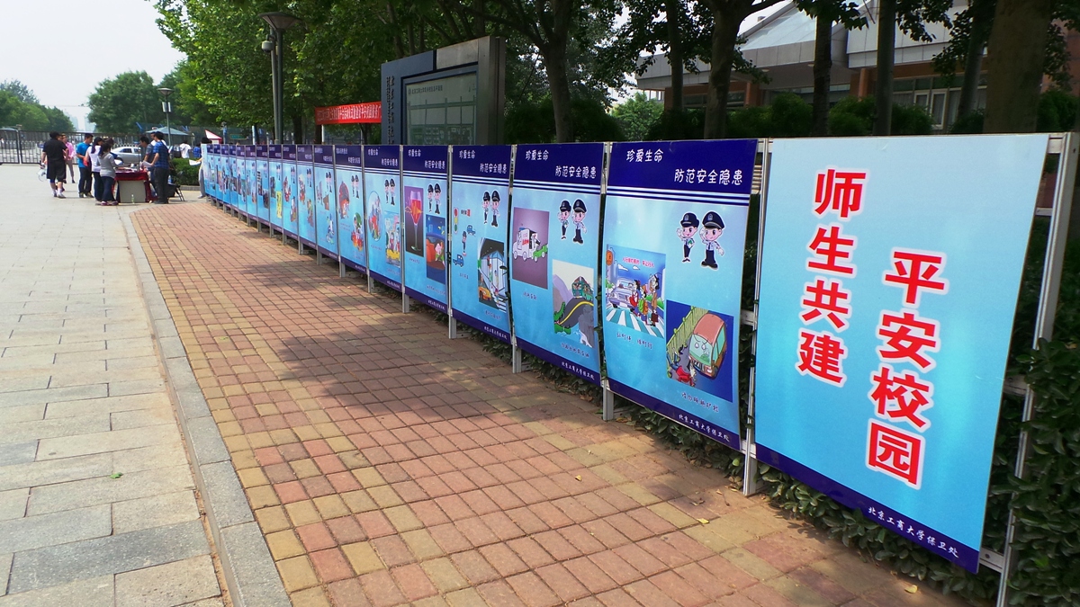 保衛(wèi)處還在鐘樓兩側(cè)甬路上擺放了關(guān)于“防火、防詐騙、防交通事故”的宣傳展板,號召師生進(jìn)一步提高安全防范能力,共同推進(jìn)平安校園建設(shè)。