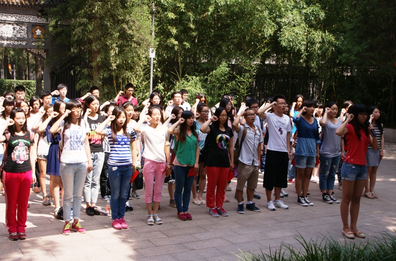 隨后,全體師生來到李大釗烈士紀念雕塑前,開始轉正宣誓活動。隨著高亢的《國際歌》響起,活動現場莊嚴肅穆。全體學生黨員舉起右手、緊握右拳,面向黨旗齊聲宣讀入黨誓詞,聲音響徹云霄。宣誓結束后,經濟學院金融112班李祎同學代表剛剛轉正的全體學生黨員說出了自己的感受:“在這個莊嚴而神圣的大會上,我們的心靈又一次接受了馬克思主義的洗禮。今天的轉正將成為我們新的起點,我們一定會牢記入黨誓詞,繼承先烈遺志,用自己的實際行動為黨旗增光添彩。”宣誓活動在《沒有共產黨就沒有新中國》的歌聲中圓滿結束。
