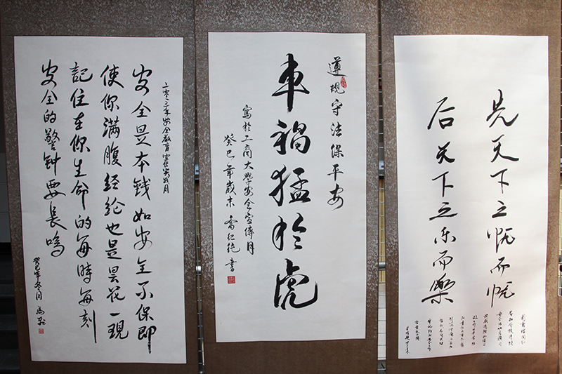 本次活動中各單位高度重視,積極發(fā)動師生參與,踴躍投稿。黨委副書記盧思鋒親自帶領專家團隊主持本次大賽的作品評選工作。校圖書館結(jié)合工作需要組織教職工學習消防知識,并用攝影記錄學習全過程。商學院動員班級制作安全教育宣傳畫和相關網(wǎng)頁內(nèi)容,一些離退休老師們也提交了相應作品。通過一段時間的集中展示和專家評審,最終書法作品與攝影作品兩項各評選出一等獎一名、二等獎兩名、三等獎三名、優(yōu)秀獎五名,同時還評選出大賽優(yōu)秀組織獎兩名。