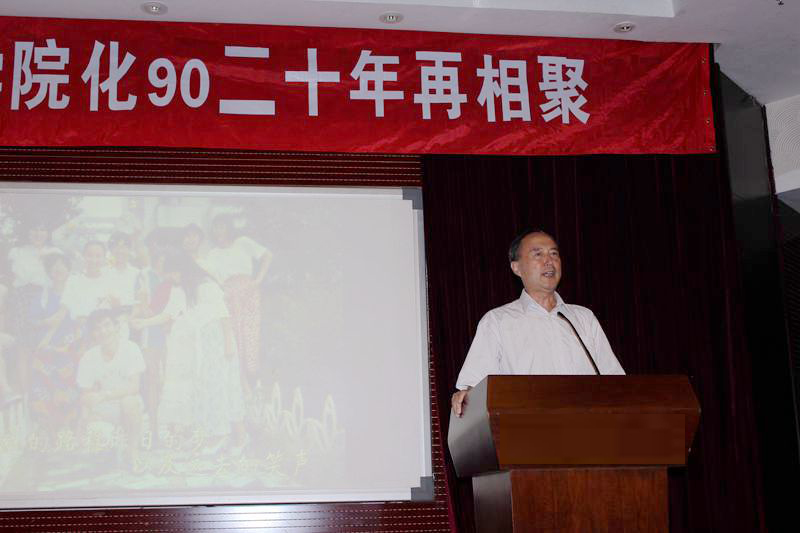 原化工系系主任莫述誠教授代表曾為本屆校友授課的全體老師叮囑校友們:一要注意身體健康,二要保持好的心態。張永剛、孫慧峰、曾紅宇、段勁群等校友也分別在會上發言,代表90級校友向學校匯報成績,表達了校友們對母校的眷戀與熱愛,感謝母校及恩師的教導和培育。隨后,呂東燕代表學校接受了化90級校友的集體捐贈,并當場向校友頒發了捐贈證書,對校友們支持母校、關心母校發展表示衷心感謝。