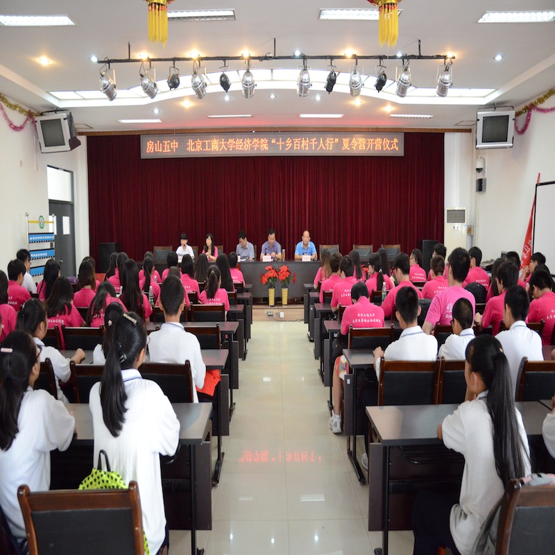經(jīng)濟(jì)學(xué)院的50名學(xué)生在團(tuán)總支書記單紫薇和輔導(dǎo)員馬騰的帶領(lǐng)下來到房山五中,開展“獻(xiàn)青春年華,行夢想之路”的暑期夏令營支教活動(dòng)。