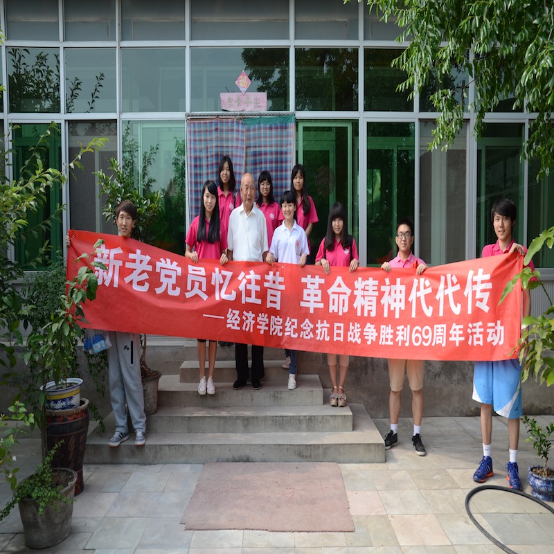 為紀(jì)念抗日戰(zhàn)爭勝利69周年,實(shí)踐團(tuán)隊(duì)中的學(xué)生黨員以“新老黨員憶往昔革命精神代代傳”為主題,前往婁子水村慰問建國前老黨員趙啟同志,在訪談過程中,老黨員向?qū)W生們講述了自己參加革命戰(zhàn)爭的故事,并心潮澎湃說:“孩子們,沒有共產(chǎn)黨,就沒有新中國,也就沒有你們今天的幸福生活,一定要好好學(xué)習(xí)回報(bào)社會(huì)!”婁子水村黨總支宣傳委員趙偉同志向大學(xué)生們介紹了村中黨員在解放前抗戰(zhàn)的英勇事跡,并號(hào)召大學(xué)生們居安思危、飲水思源,保持勤儉節(jié)約,艱苦奮斗的革命傳統(tǒng),有作為的青年學(xué)生。