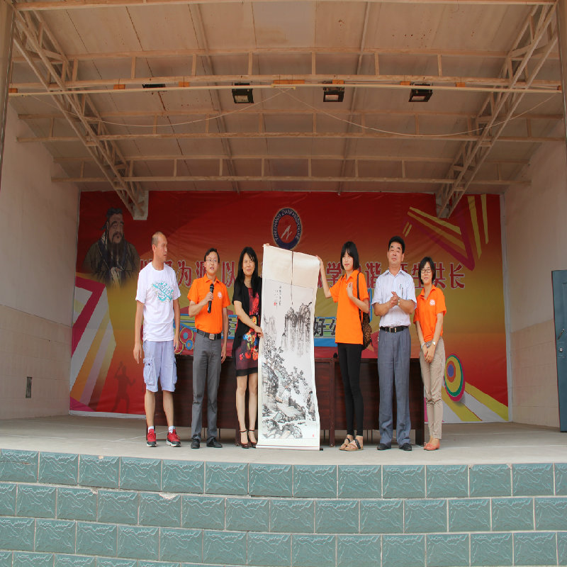 張坊中學(xué)校副校長隗永春介紹了張坊中學(xué)最近幾年的良好發(fā)展情況以及對(duì)藝傳學(xué)院支教學(xué)生的熱烈歡迎。徐亮老師向在場的中學(xué)生們簡單地介紹了學(xué)校和學(xué)院情況,并歡迎中學(xué)們在不久的將來加入工商大學(xué)的大家庭。學(xué)院還將一副學(xué)生作品作為禮物贈(zèng)送給張坊中學(xué)。