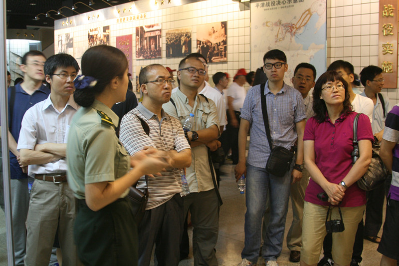 在平津戰役紀念館前的勝利廣場前,全體黨員舉著鮮紅的黨旗合影留念。進入展廳,所有人都懷著一份崇敬與肅穆的心情,跟隨講解員緩緩踱步于各個展廳,認真觀看戰役決策、戰役實施、人民支前、偉大勝利、英烈業績等各部分內容。大家深刻認識到正是在中國共產黨的正確領導下,我們才能有今天的輝煌成績。