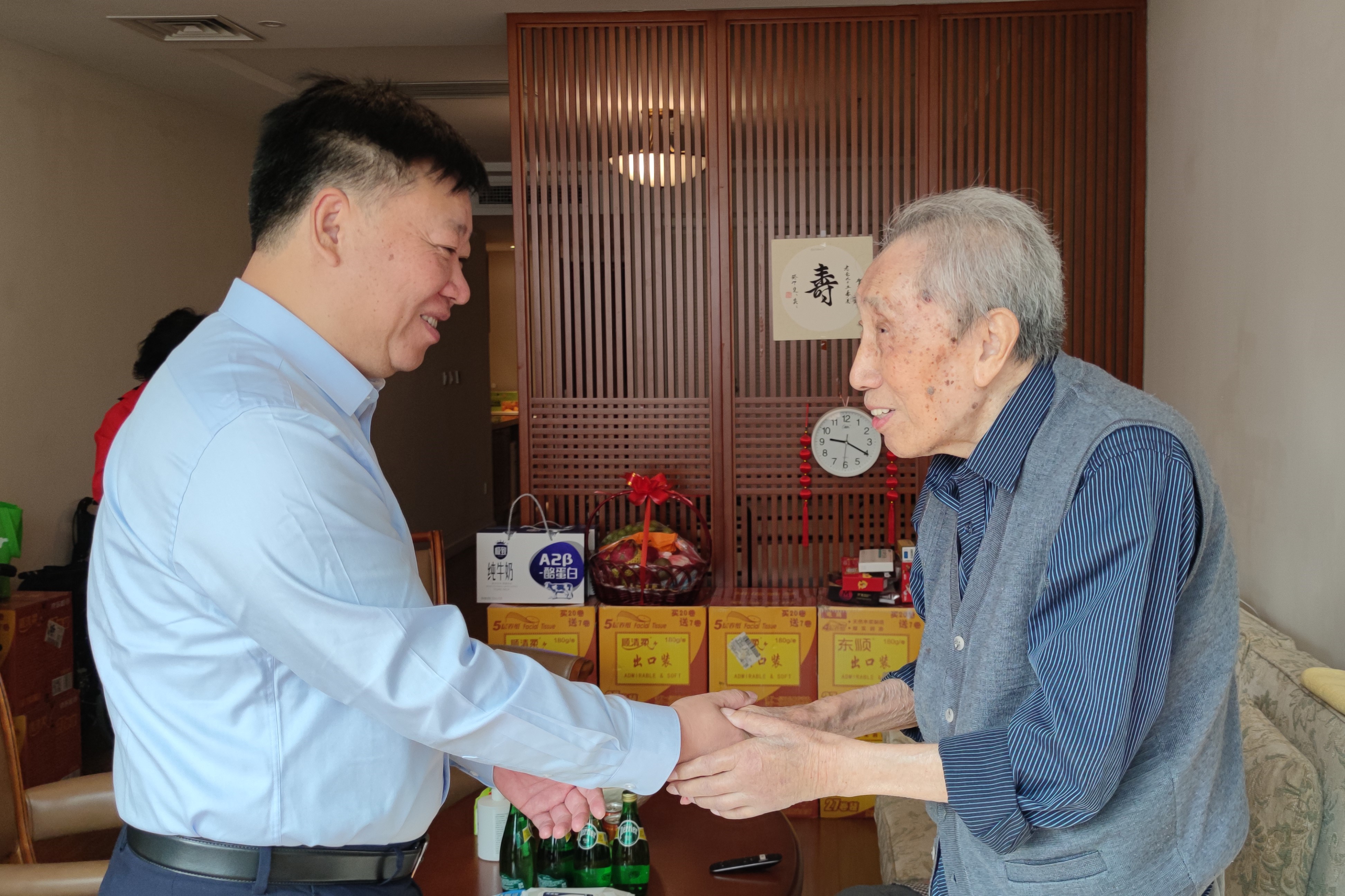 走訪慰問中,校領(lǐng)導(dǎo)親切詢問老同志身體狀況和生活近況,代表學(xué)校黨委和行政感謝老干部在黨和學(xué)校發(fā)展不同歷史階段所作出的貢獻(xiàn),希望他們?cè)诒V厣眢w、安享晚年的同時(shí),繼續(xù)發(fā)揮自身政治優(yōu)勢、經(jīng)驗(yàn)優(yōu)勢、威望優(yōu)勢,一如既往地關(guān)心、支持學(xué)校的發(fā)展,為學(xué)校高水平研究型大學(xué)建設(shè)獻(xiàn)計(jì)獻(xiàn)策、發(fā)光發(fā)熱。