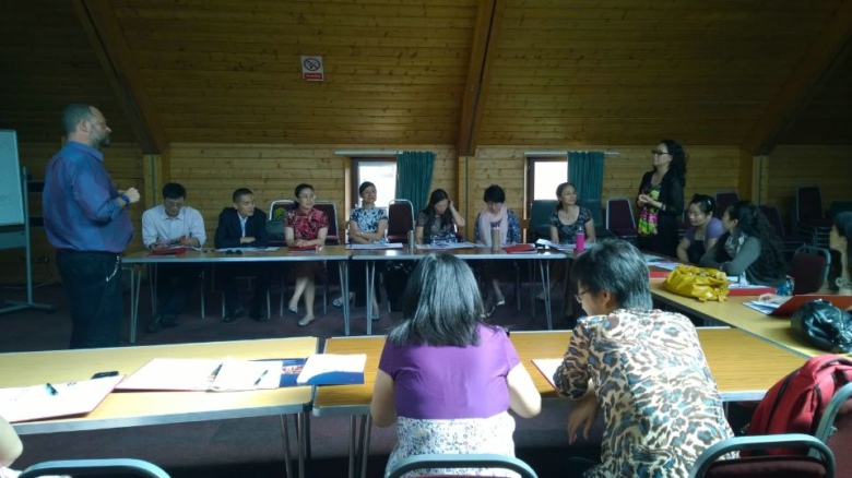 培訓團于7月20日順利抵達牛津,7月21日上午,牛津大學赫特福德學院介紹牛津大學的歷史文化背景、優秀傳統、導師制等教學管理理念,并且采用啟發、提問、討論等教學方法,與培訓團教師就英語教學理念和技巧進行了生動深刻的互動探討。下午,牛津大學赫特福德學院國際培訓項目主管凱羅琳·萊絲(Caroline Rice)及教學與語言項目總監安德魯·海明威(Andrew Hemingway)與培訓團團長劉紅艷、副團長苗天順及團員就培訓工作安排和合作交流進行交流和探討。