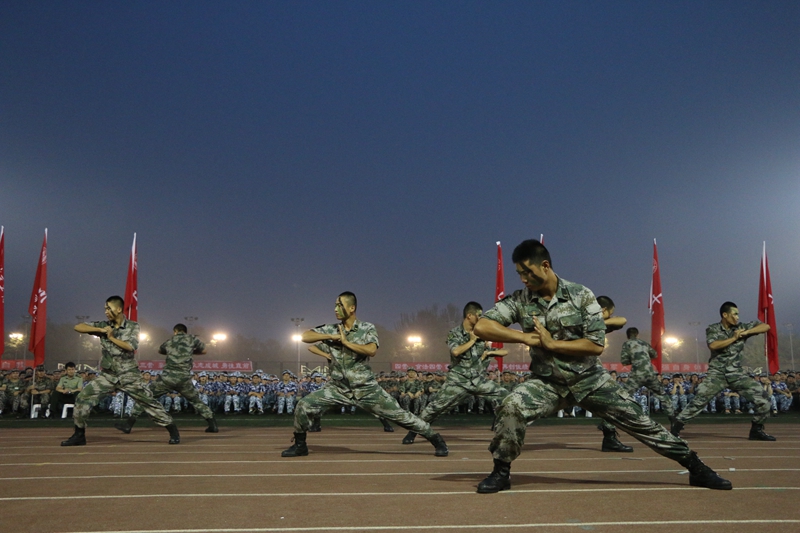 8月23日晚,學校2014級本科生軍訓開訓儀式在良鄉校區體育場隆重舉行。近三千名大一新生英姿颯爽,將用激情與汗水迎接大學的第一場考驗——軍訓,以昂揚的斗志與拼搏精神譜寫出當代大學生的風采。