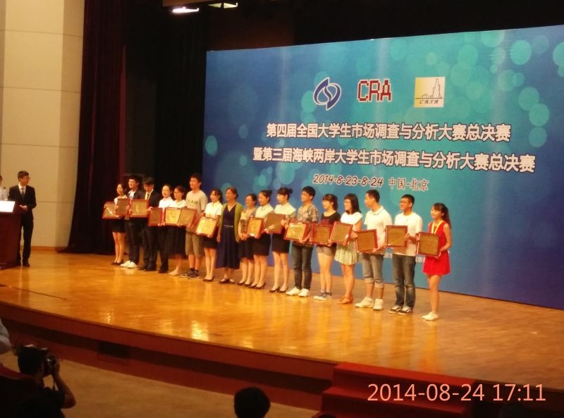 8月24日,由中國商業統計學會、中華應用統計學會主辦的“第四屆全國大學生市場調查分析大賽總決賽暨第三屆海峽兩岸大學生市場調查分析大賽”在對外經濟貿易大學落幕。我校選拔推薦的三支隊伍表現優異,奪得了全國總決賽大陸地區選拔賽一等獎一項、二等獎兩項。