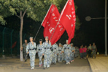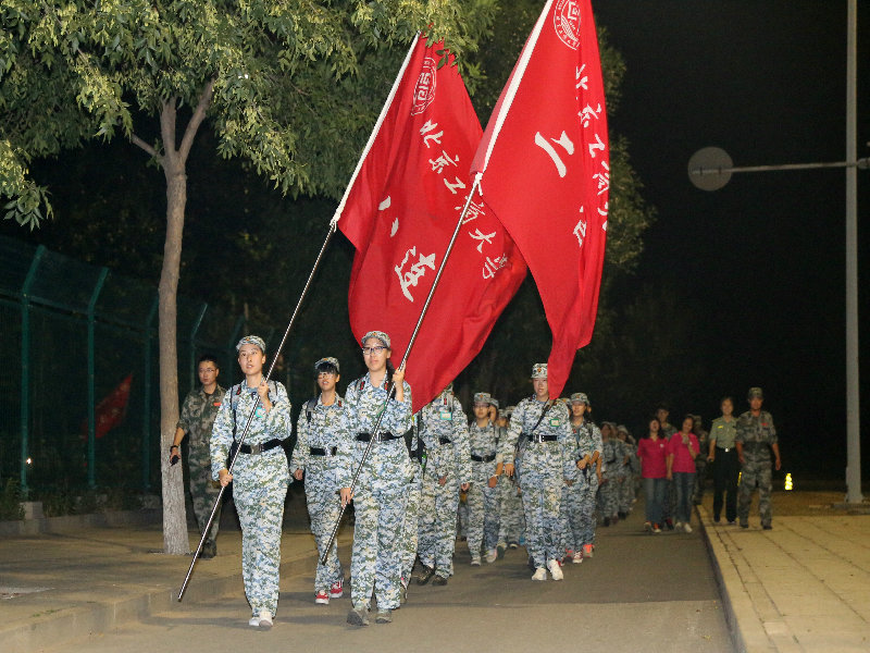 晚上,天氣更是涼爽,同學們身著迷彩軍裝,背著背包,在教官們的帶領下完成了長達4.5公里的拉練。一路上同學們喊著響亮的口號,應和著教官唱起軍歌,成長的路上有汗水有淚水,但更多的是戰勝自我后的喜悅與收獲。