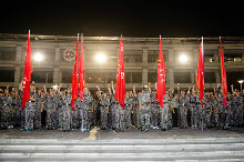 晚上八點整,2014級新生進行了長途負重拉練活動,學校考慮到男女生的身體素質相區別,規劃出不同的行軍路線,男生6公里,女生4.5公里。秋風颯爽、英氣蓬勃,同學們一身戎裝向著目的地進發。每個人背著裝著被褥的背囊,身著干凈整齊的軍裝,邁著矯健的步伐,帶著些許的興奮與對拉練的好奇,踏上征程。此次拉練過程中,指導員尹航老師及部分學生干部與同學們共同走完了拉練全程。同時,學校的安全、醫療保障工作十分到位,在此次拉練行進過程中,路口以及車輛拐彎處均設有保衛處人員執勤,提醒同學注意過往車輛,保衛隊伍行進安全,處理突發事件,校園巡邏車緩慢行駛在路上,隨時為同學提供幫助,讓每位同學都感受到家一般的溫暖。這次的拉練,對同學來說是一次巨大的考驗。拉練過程中許多同學不顧訓練的疲勞和身體的不適,堅持走完全部行程;有的還主動放棄病假加入到拉練隊伍中,充分體現出法院學子勇于挑戰、敢于拼搏的風姿。據統計,拉練過程中,法學院無一人落隊或退出,我院新生在拉練中充分發揚吃苦耐勞的精神,出色地完成了軍訓任務。同學們在拉練中鍛煉了身體、磨練了意志,培養大家的團隊精神和組織紀律性,為軍訓任務的圓滿完成和未來大學生活的展開奠定了良好的基礎。據悉,本次拉練結束后,前期的軍訓暫且告一段落,即將開始方陣練習并準備匯報演出,并且下一階段的練習將加大訓練強度。