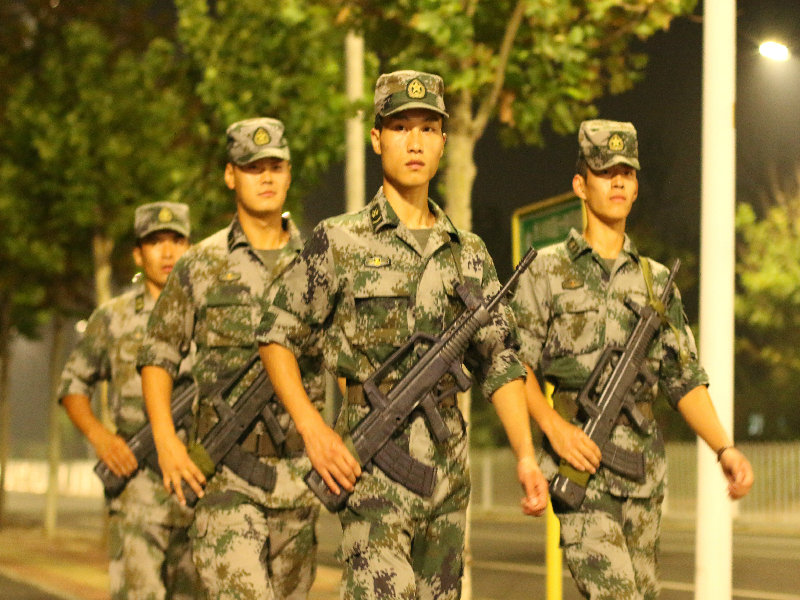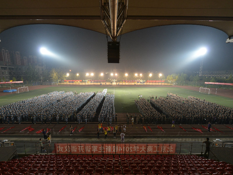 晚上,軍訓學員們終于迎來了期待已久的拉練。19點20分,全體2014級新生在操場集合完畢,共同觀看了2013級本科生軍訓匯報演出視頻,學長學姐們的精彩表現極大地鼓舞了新生們,讓他們可以充滿信心地出發。八點整,拉練的號角吹響,小軍人們背好行囊,整裝待發。“軍歌嘹亮,步伐整齊,人民軍隊有鐵的紀律……”,浩浩蕩蕩的隊伍從田徑場出發開始拉練。本次拉練采取男女分開進行,男生行走路程約6公里,女生行走路程約4.5公里。