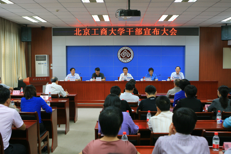 9月2日下午, “北京工商大學干部宣布大會”在阜成路校區召開。市委組織部副部長李世新、市委教育工委常務副書記劉建、市委組織部部務委員張彤軍等出席大會。全體校領導、中層干部等120余人參加會議。會議由黨委書記譚向勇主持。