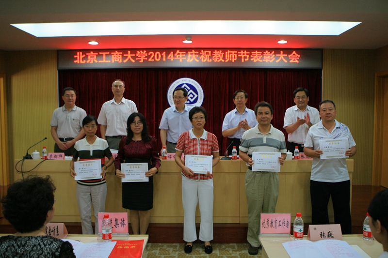 值此第30個(gè)教師節(jié)之際,9月10日下午,學(xué)校在阜成路校區(qū)舉辦2014年慶祝教師節(jié)表彰會(huì)。黨委書記譚向勇、校長(zhǎng)孫寶國、黨委副書記盧思鋒、副校長(zhǎng)李朝鮮,2014年首都勞動(dòng)獎(jiǎng)?wù)芦@得者、2014年北京高校教學(xué)名師,2013--2014年度學(xué)校優(yōu)秀教師、優(yōu)秀教育工作者、先進(jìn)集體,從教30年教職工代表及師生代表等共聚一堂,歡度節(jié)日。黨委副書記、紀(jì)委書記、工會(huì)主席張德玉主持表彰活動(dòng)。