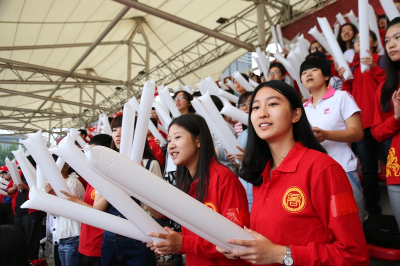 這是全體新生參與的第一次運動會,記者隨機采訪了運動員和觀眾。一位新生說:“跟高中運動會太不一樣了,現(xiàn)場的氣氛好熱烈,我不由自主地跟著他們大聲歡呼。”在接力跑道上,一位女生不慎跌倒,在眾多學(xué)姐的攙扶下,她一瘸一拐與隊員跑完了最后的路程,場邊的觀眾都為她豎起了大拇指,“學(xué)長學(xué)姐都很關(guān)心我,讓我感受到了家的溫暖。”她好像忘記了傷痛,笑得很明媚。