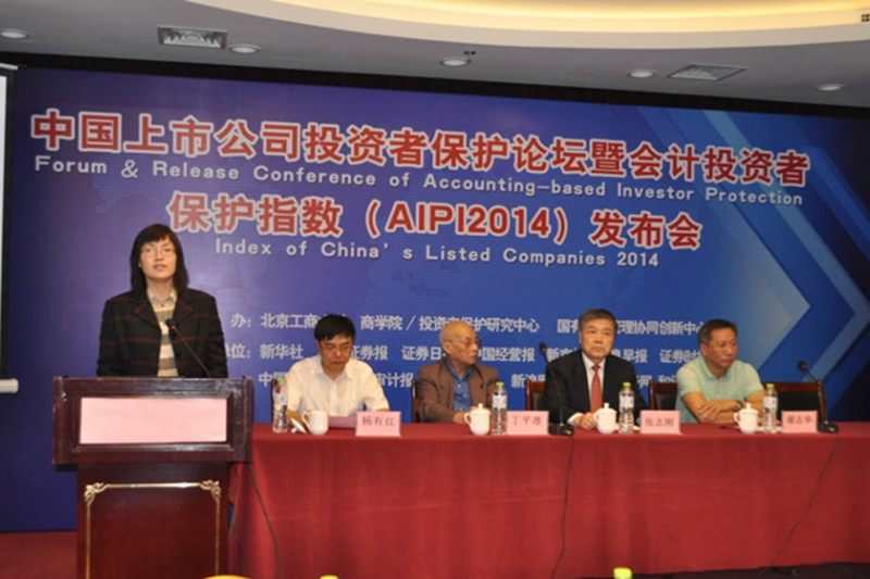 繼過去連續四年發布上市公司投資者保護指數后,9月26日,我校召開中國上市公司投資者保護論壇暨會計投資者保護指數(AIPI2014)發布會,第五次發布該指數。商務部原副部長、中國商業聯合會會長張志剛,中國注冊會計師協會原秘書長丁平準,我校副校長謝志華出席發布會并作主題演講。《證券日報》等在京媒體、《審計研究》等專業期刊、上市公司及投資機構代表,在京高校和科研機構代表以及商學院部分教師和學生100余人參加發布會。發布會由科技處處長楊有紅主持,商學院黨總支書記歐陽愛平到會致辭。