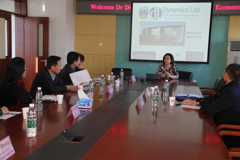 11月3日,愛爾蘭都柏林大學(xué)社會(huì)學(xué)院院長(zhǎng)戴安•佩恩教授(Prof.Diane Payne)一行來(lái)我校會(huì)談并進(jìn)行學(xué)術(shù)講座。愛爾蘭都柏林大學(xué)熊航博士以及來(lái)自我校經(jīng)濟(jì)學(xué)院金融系、財(cái)政系、統(tǒng)計(jì)系、統(tǒng)計(jì)系等專業(yè)的教師和研究生參加了會(huì)談和講座。講座由經(jīng)濟(jì)學(xué)院貿(mào)易系徐振宇副教授主持。